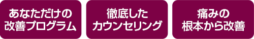 2回目以降の料金は、初回体験にて、「当院で改善させたい」と思われた方に「あなただけの改善プログラム」としてご提案します。