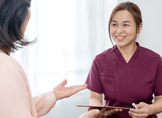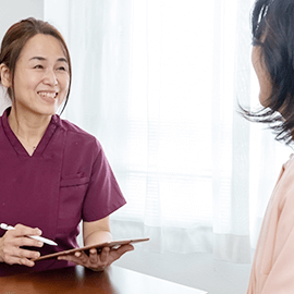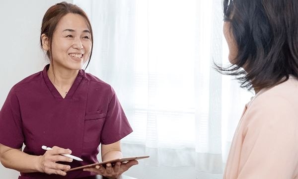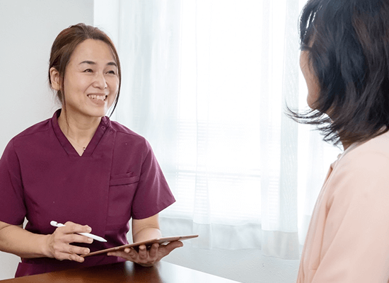 施術前に行った検査をもう一度行い、施術前後の変化を確認します。その上で、今後どのような施術を行っていくのか、どのくらいのペースで通院するべきなのかをお伝えします。
